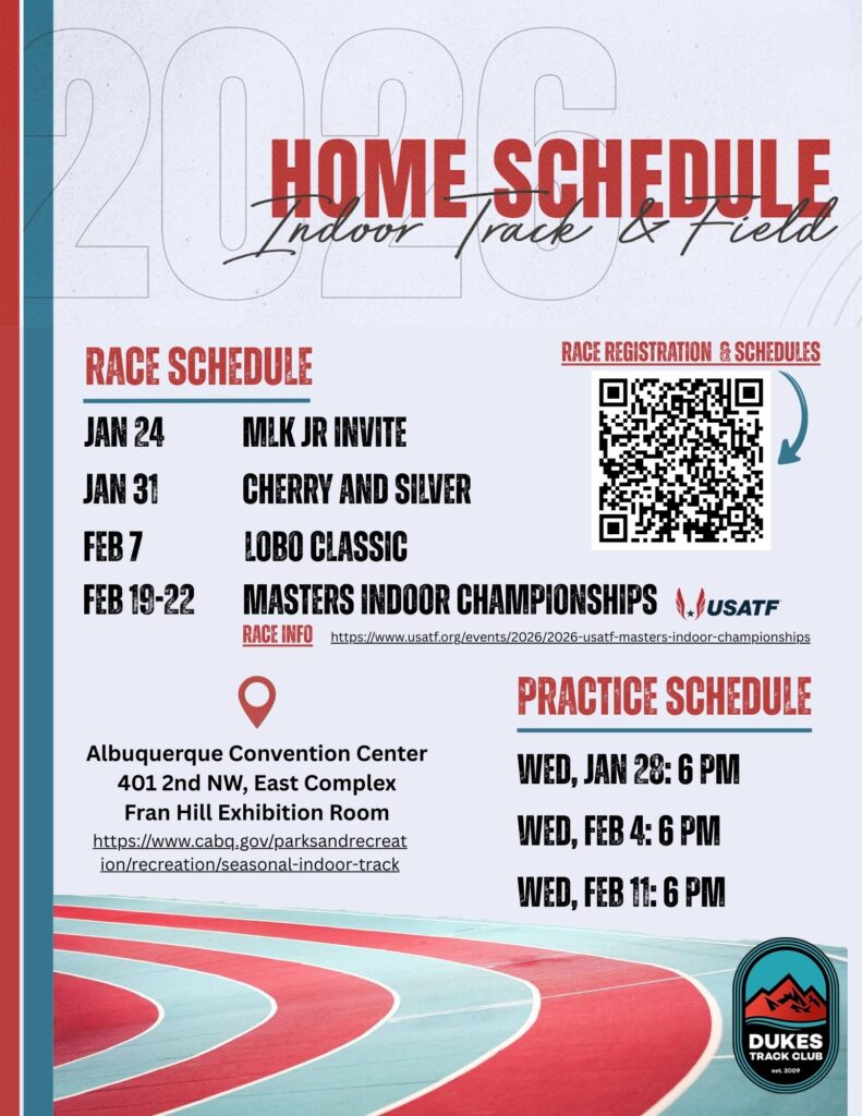 Dukes Track Club was established in 2009 as a premier running club in the Albuquerque area. Over the decades, the team has grown and now fosters a positive environment for all ages and abilities, including a dedicated youth program. At the heart of the club is a strong commitment to supporting the Albuquerque community, encouraging fitness, team work, and a passion for the sport.